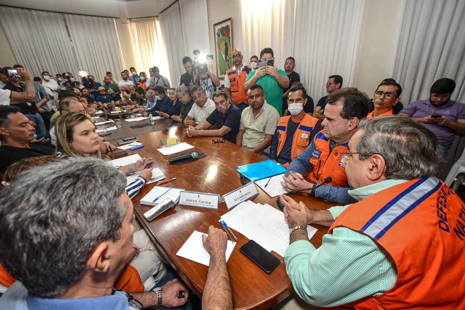 Equipes do Estado atendem prefeitos e autoridades municipais na sede da Femurn para agilizar medidas de atendimento às famílias prejudicadas pelas fortes chuvas.