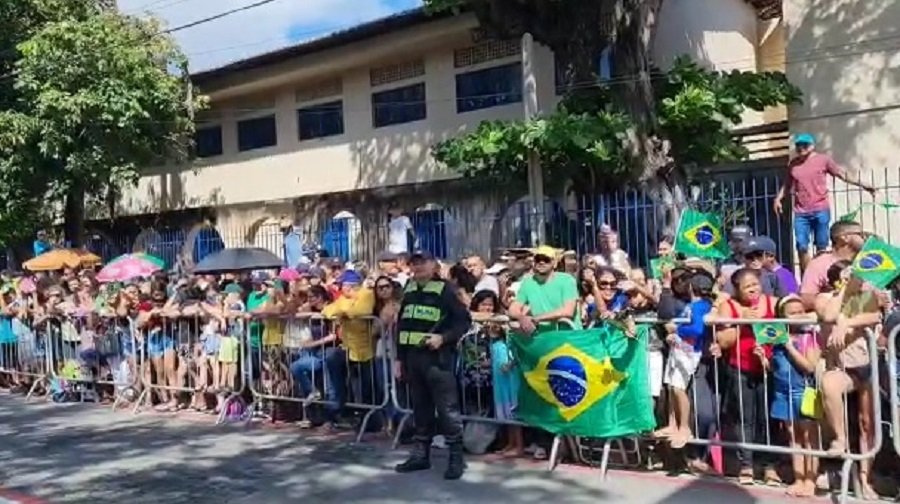 Centenas de pessoas se concentram na Praça Cívica de Natal, em Petrópolis, Zona Leste da capital, para ver o Desfile Cívico Militar do 7 de Setembro. A capitã de Mar e Guerra, médica, Rita de Cássia Machado Passos, que é a Comandante-Geral do Desfile, comandando 2.640 militares, sendo 350 mulheres; 1.583 alunos do Grupamento Escolar, 797 componentes do Grupamento cívico; e 160 viaturas.