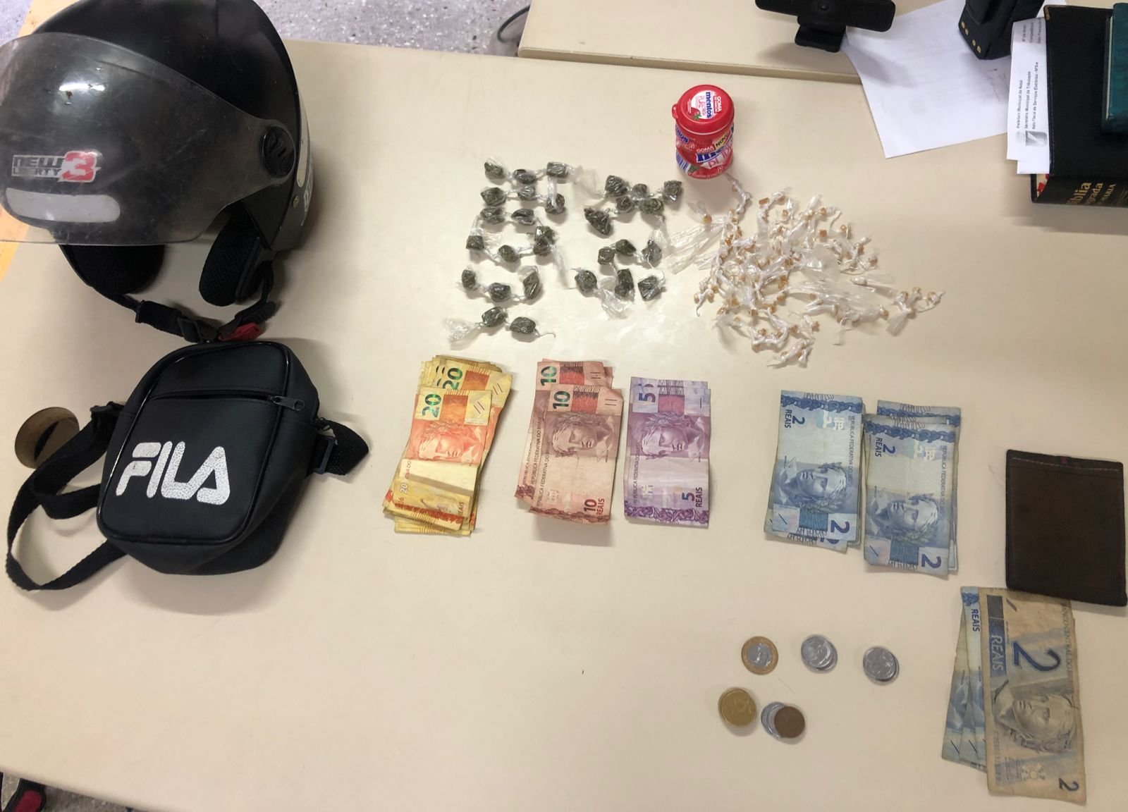 Com eles foi encontrado drogas, mas a arma utilizada na ação criminosa foi arremessada durante a fuga em local desconhecido.