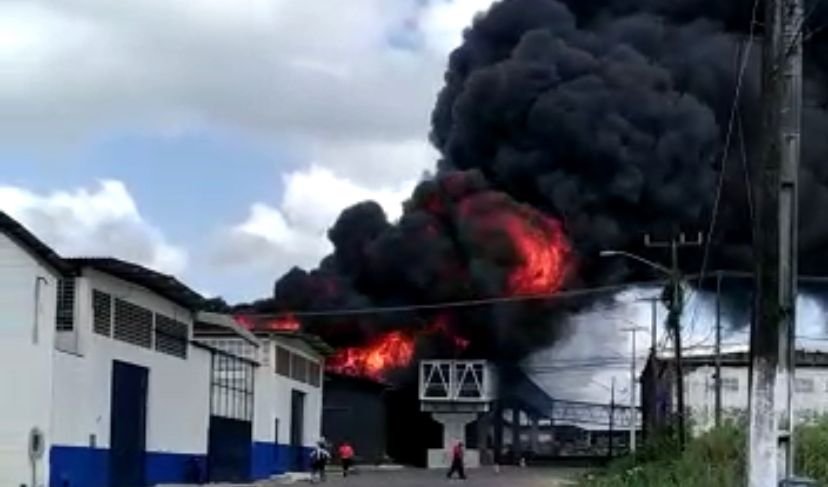 Um incêndio de grandes proporções atinge neste momento uma distribuidora de pneus que fica localizada às margens da BR-101, em Parnamirim, na Região Metropolitana de Natal.