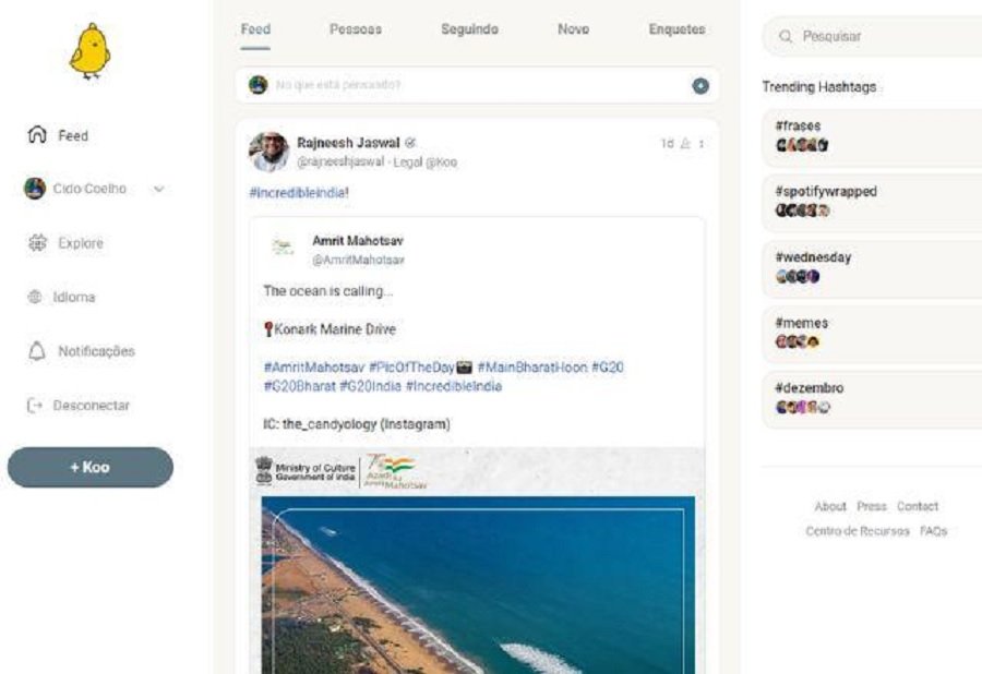 O Koo App é um microblog, assim como o Twitter, só que de origem indiana, permite a publicação de textos de até 500 caracteres, fotos, vídeos, enquetes, além de outras funcionalidades.