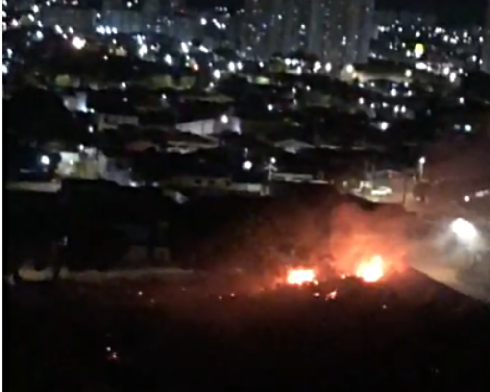 Um incêndio atingiu uma área de mata na noite desta terça-feira (13) em Nova Parnamirim (RN). Alguns moradores da localidade registraram o fogo em filmagens através da janela dos apartamentos.