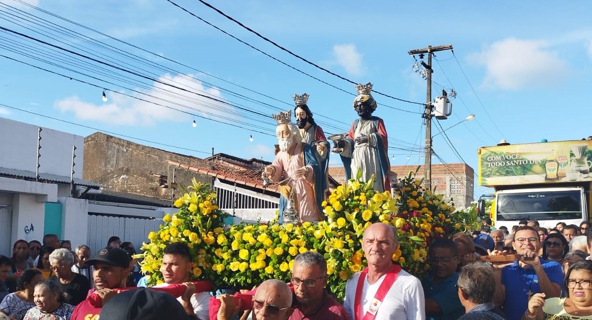 Centenas de fiéis celebraram o fim a festa de Santos Reis, nesta sexta-feira (6), no bairro que leva o mesmo nome dos santos. A tradicional procissão reuniu os fiéis pelas ruas e avenidas do bairro em demonstração de fé e gratidão. Os Reis Magos são copadroeiros de Natal.