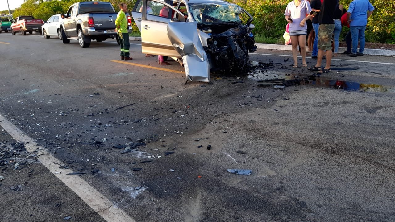 Uma colisão frontal entre dois veículos no km 20 da BR 101, no município de Touros, deixou duas pessoas mortas e quatro em estado grave.
