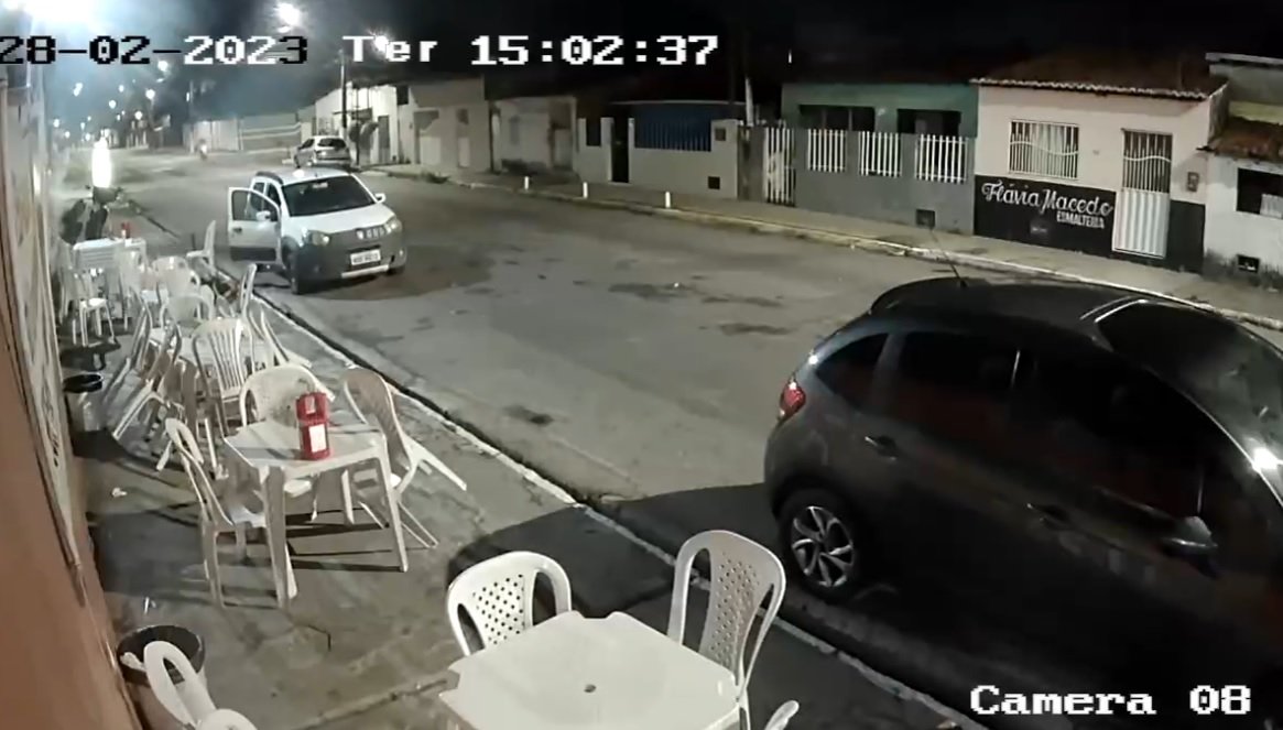 Três pessoas ficaram feridas em atentado na noite de terça-feira (28), em uma lanchonete em Parnamirim, Região Metropolitana de Natal (RN). Imagens de câmeras de segurança divulgadas mostram o momento em que o proprietário do estabelecimento, a esposa dele, o segurança e um amigo conversam em uma das mesas na calçada.