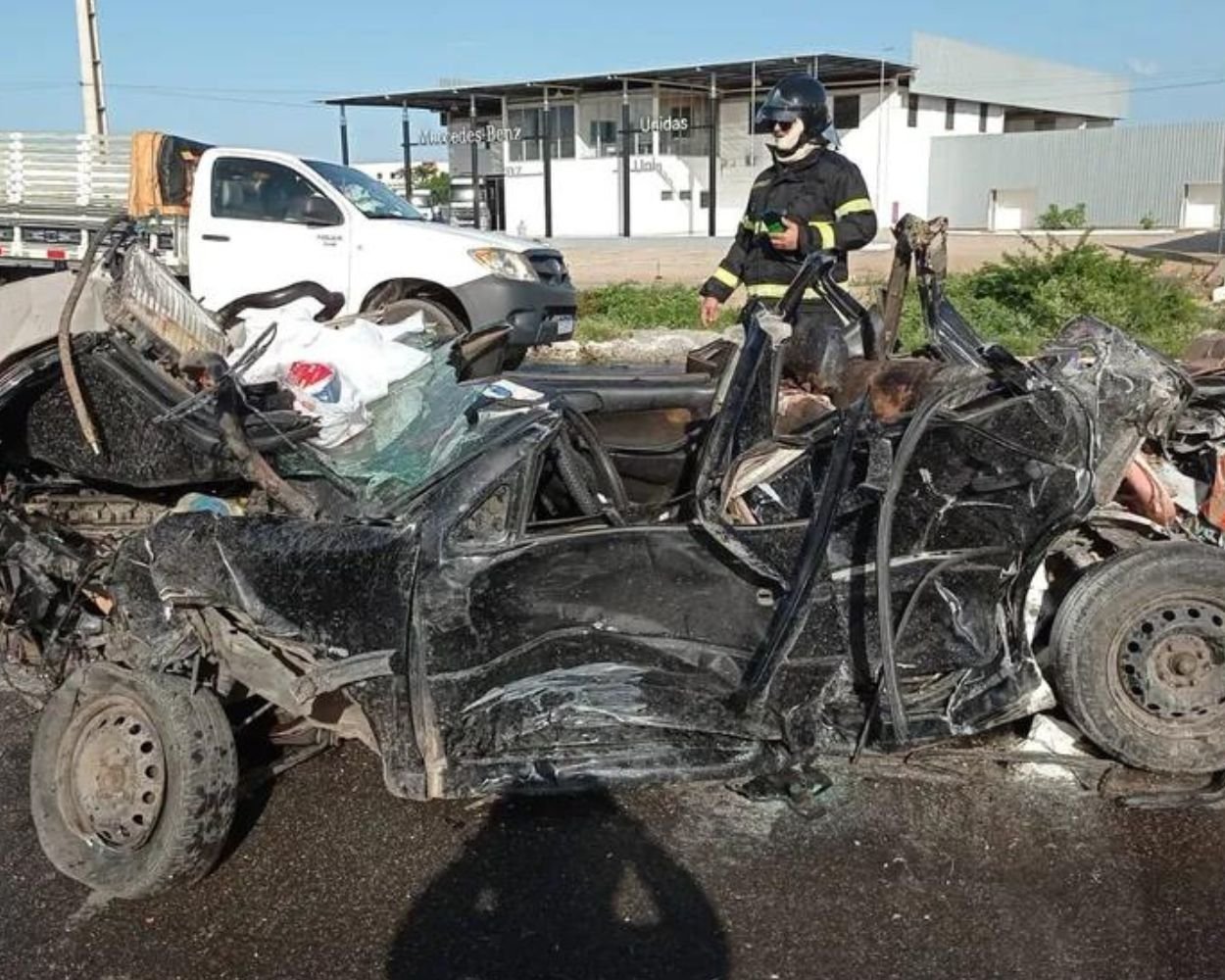 Um grave acidente foi registrado na tarde desta terça-feira (7) na BR 304, na saída de Mossoró para Fortaleza. A colisão envolveu um carro, que bateu em uma carreta e em outro veículo.