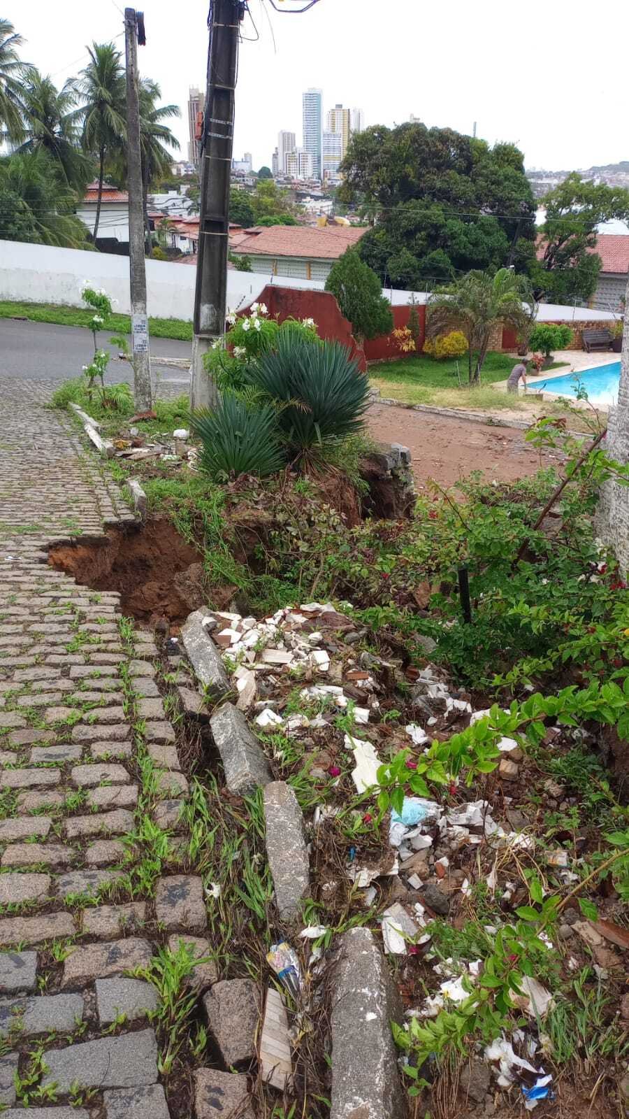 Moradores da rua Morro do Careca, no bairro Ponta Negra, estão preocupados com um poste que corre risco de desabar devido a um deslizamento de terra causado pelas fortes chuvas desde a madrugada de sábado (18). Segundo moradores, o problema já havia ocorrido antes e, há cerca de uma semana, o buraco próximo ao poste está aberto. Uma moradora informou que solicitaram ajuda da Defesa Civil, da Neoenergia Cosern e do Corpo de Bombeiros.