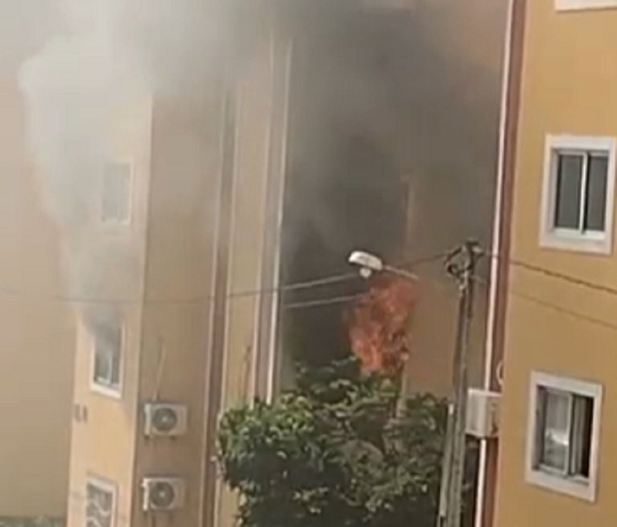 O fogo foi em apartamento do terceiro andar de um dos blocos. Ninguém ficou ferido.
