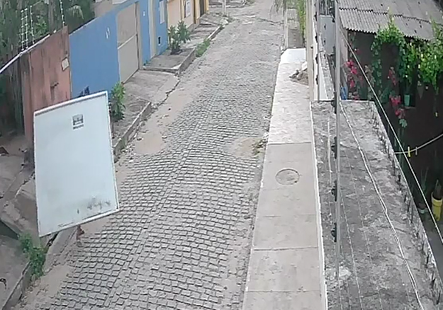 Não satisfeito com os pertencentes internos da casa, o criminoso decidiu roubar também o portão da entrada.