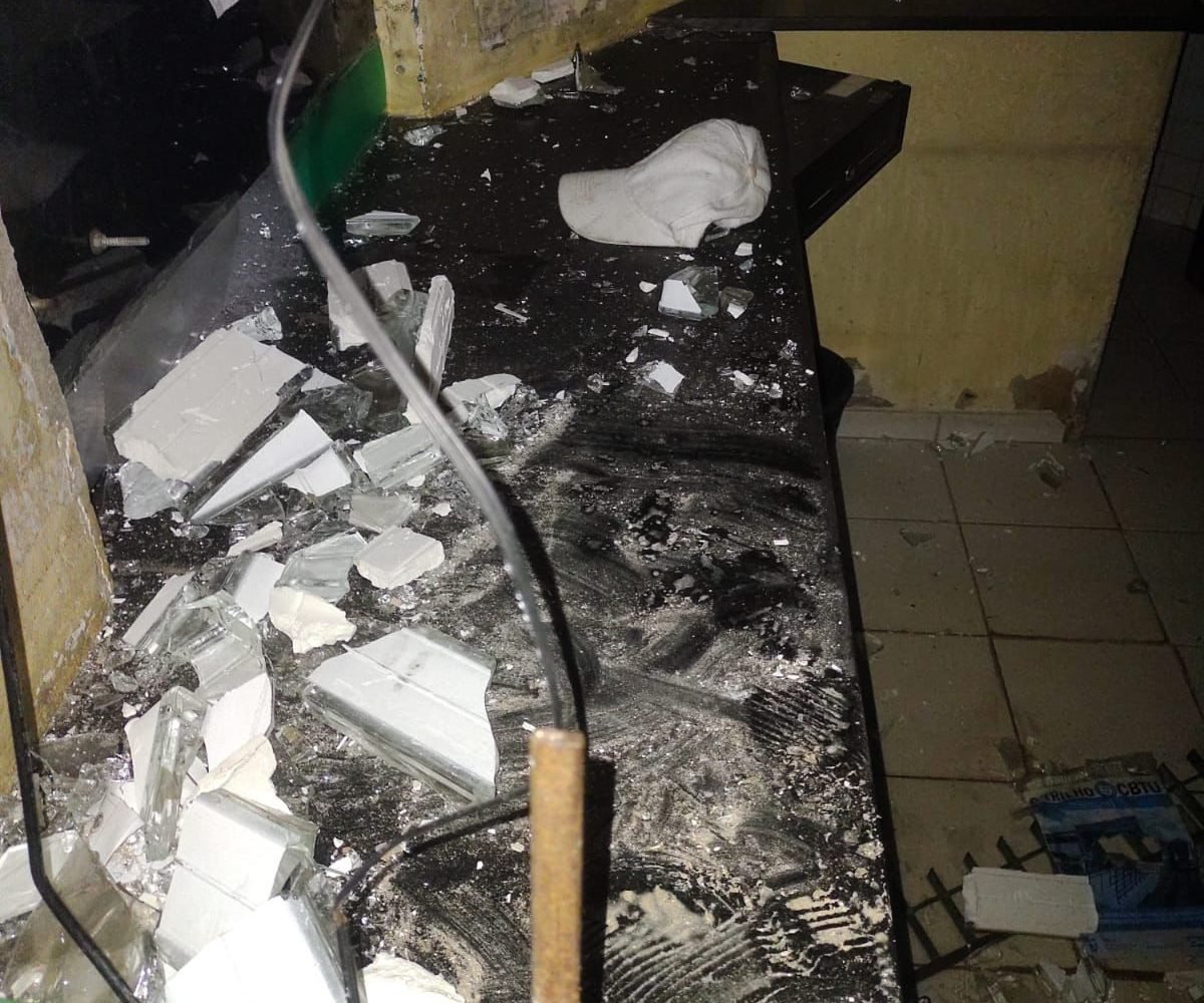 A sala ficou totalmente quebrada e segundo apurou o repórter da Tv Ponta Negra, Rogério Fernandes, um bebedouro teria sido levado, mas abandonado um pouco à frente.