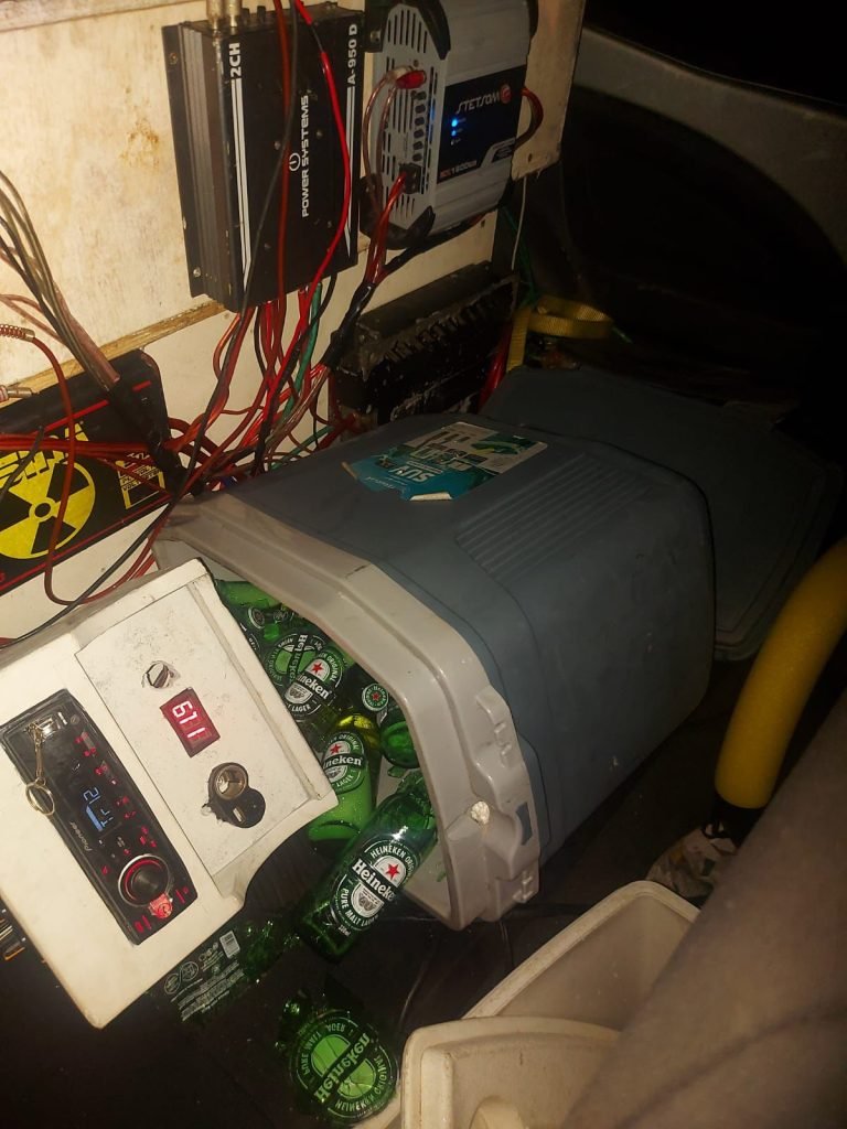 No interior do veículo, foram encontradas diversas garrafas de bebida alcoólica. O condutor, que não possuía habilitação, se recusou a realizar o teste de alcoolemia, mas diante do visível estado de embriaguez, foi confeccionado um termo de constatação.