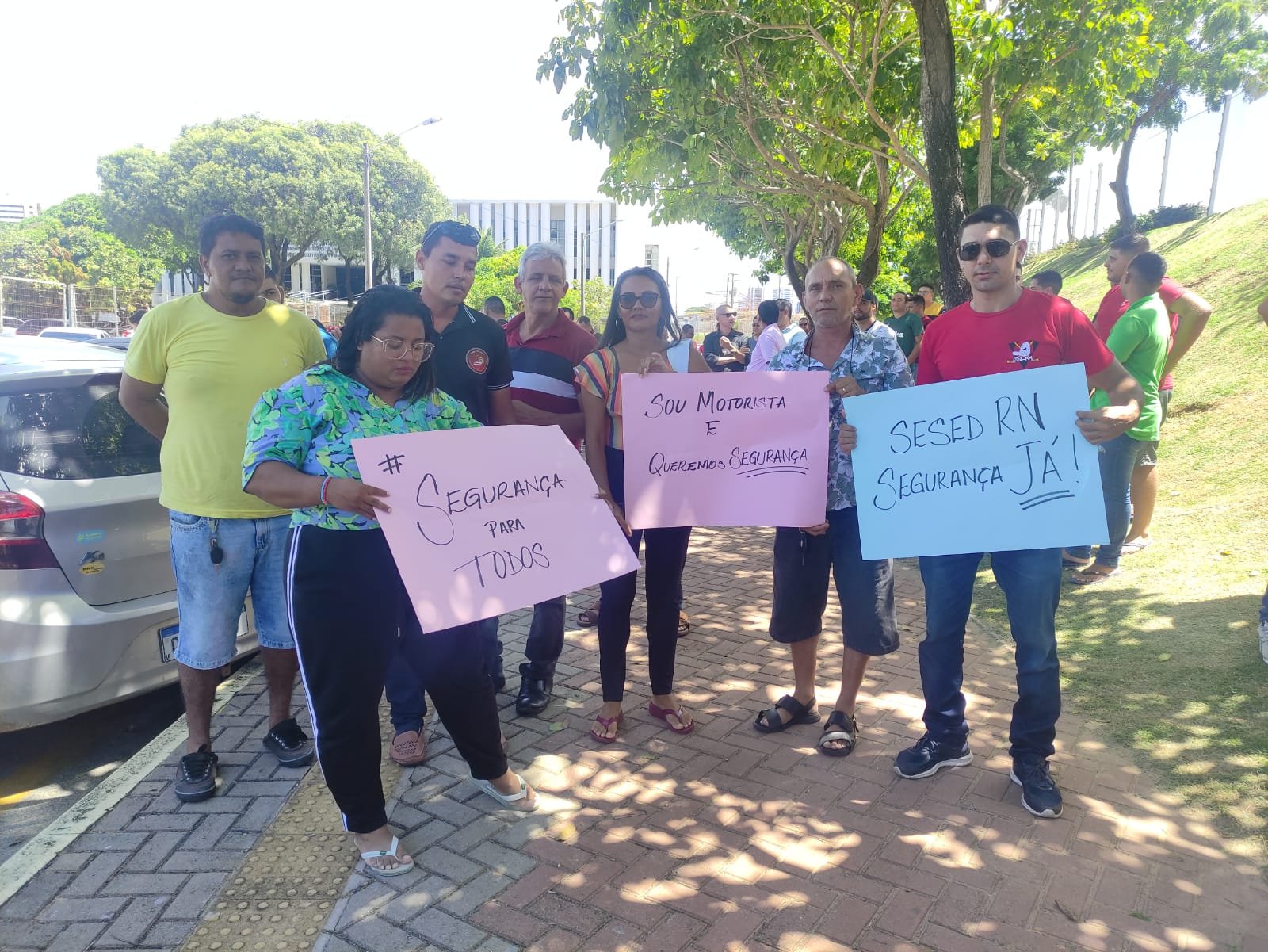 Motoristas de aplicativo se reuniram na manhã desta quinta-feira (20) para protestar em frente à governadoria do Rio Grande do Norte, localizada na BR 101, em Natal, próximo à Arena das Dunas. De acordo com a categoria, o objetivo do movimento é chamar atenção das autoridades para a questão da violência que vem atingindo esses profissionais.