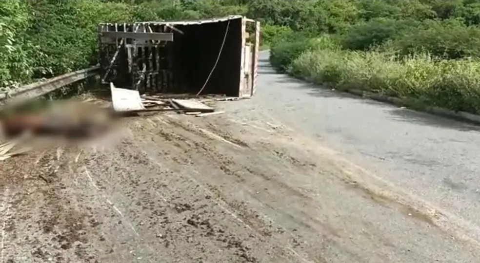 Um caminhão que carregava bois tombou no interior do Rio Grande do Norte, nas proximidades da cidade de Serrinha dos Pintos, na Região do Alto Oeste, na rodovia RN-117, neste domingo (23), e alguns animais transportados morreram.