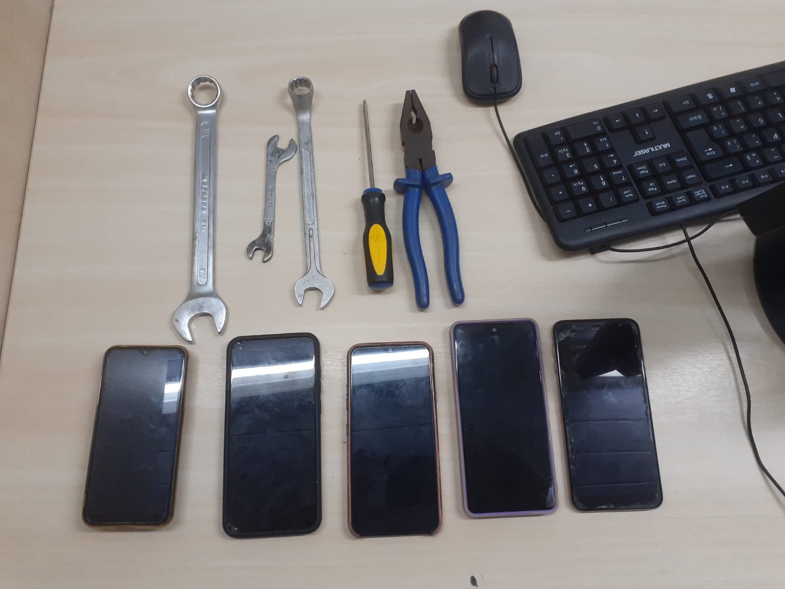 Um dos suspeitos foi detido e reconhecido por uma das vítimas, enquanto o outro conseguiu fugir. Com o infrator foi apreendido cinco aparelhos de telefone celular e ferramentas.