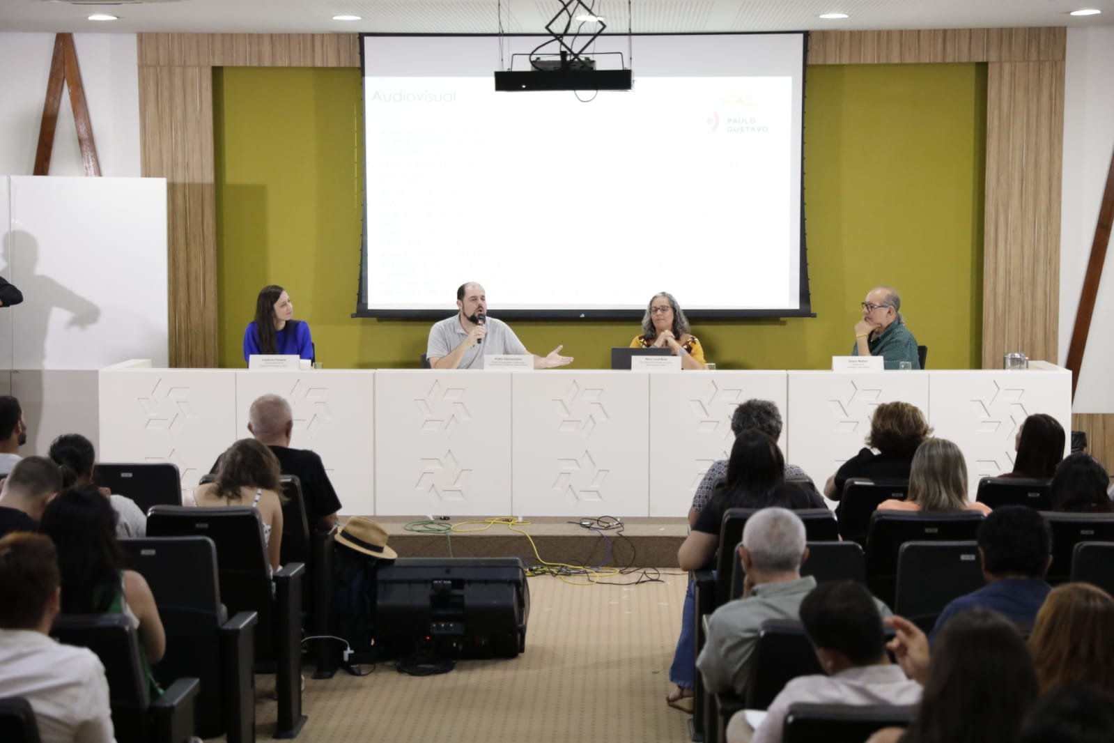 “Viemos também lembrar que enquanto Secretaria de Cultura, a gente vai ter 5% de recurso operacional, isso quer dizer que para executar a Lei Paulo Gustavo da melhor forma possível, a gente vai poder contratar parecerista, oficineiros etc,. Então vocês, fazedores de cultura, também podem ser contratados nessa outra frente, não só como proponentes”, esclarece Mary Land Brito, secretária de estado da Cultura.