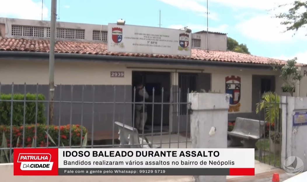 Um idoso foi baleado durante uma ação criminosa a um estabelecimento no bairro de Neópolis, na Avenida Ayrton Senna, na noite deste domingo (21).