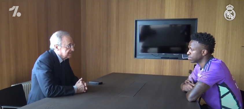 Após mais casos de racismos contra o atacante do Real Madrid, o presidente da equipe se reuniu com Vinicius Júnior para prestar sua solidariedade.