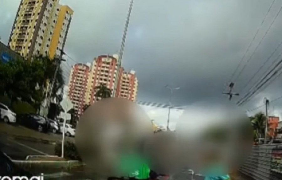 Uma criança quase foi atropelada na Av. Ayrton Senna na tarde de segunda-feira (29). Foi registrado em vídeo o momento em que o motorista da van escolar estava conduzindo a estudante para atravessar a rua e deixá-la em casa.