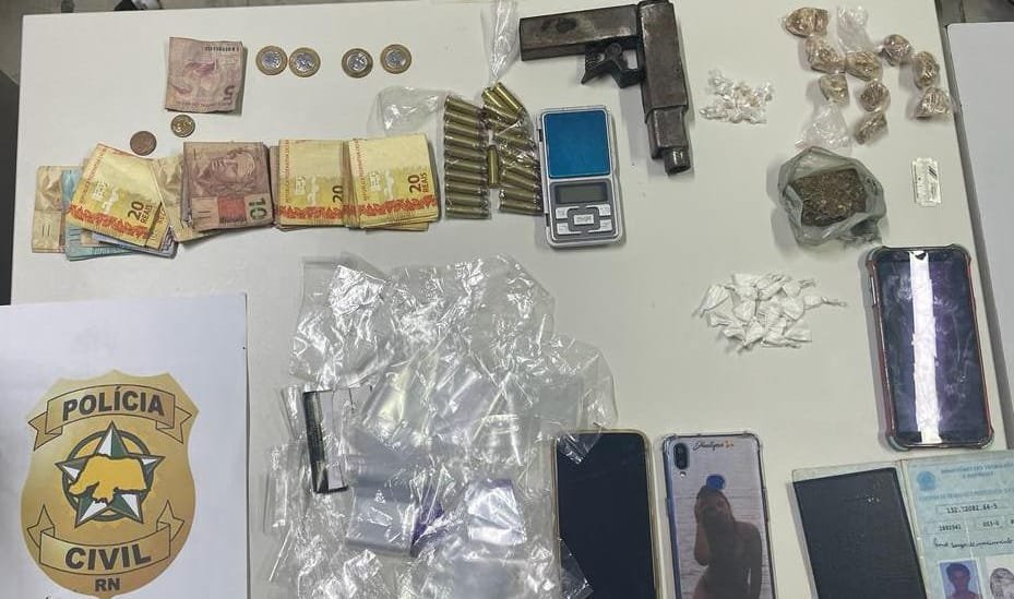 Policiais civis da 21ª Delegacia de Polícia (DP de São Gonçalo do Amarante) prenderam em flagrante, nesta terça-feira (30), uma jovem de 18 anos, suspeita dos delitos de tráfico de drogas e posse ilegal de arma de fogo. A prisão foi realizada no Bairro Santo Antônio, no município de São Gonçalo do Amarante, na Grande Natal.