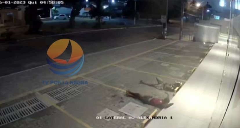 Dois homens fingiram descansar na calçada de um centro comercial no bairro Tirol, Zona Leste de Natal (RN) e acabaram arrombando e roubando uma das lojas.  Imagens de câmeras de segurança mostram o momento em que os dois deitam nas vagas de estacionamento, disfarçam, andam na frente das lojas e em seguida quebram o vidro de um dos estabelecimentos.