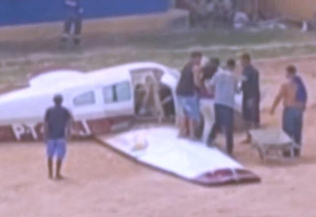 Um avião caiu após tentar um pouso forçado em um campo de futebol em reforma de Teresina (PI), na segunda-feira (12). Trabalhadores que estavam no local presenciaram a queda e ajudaram a resgatar as cinco pessoas a bordo, incluindo duas crianças.