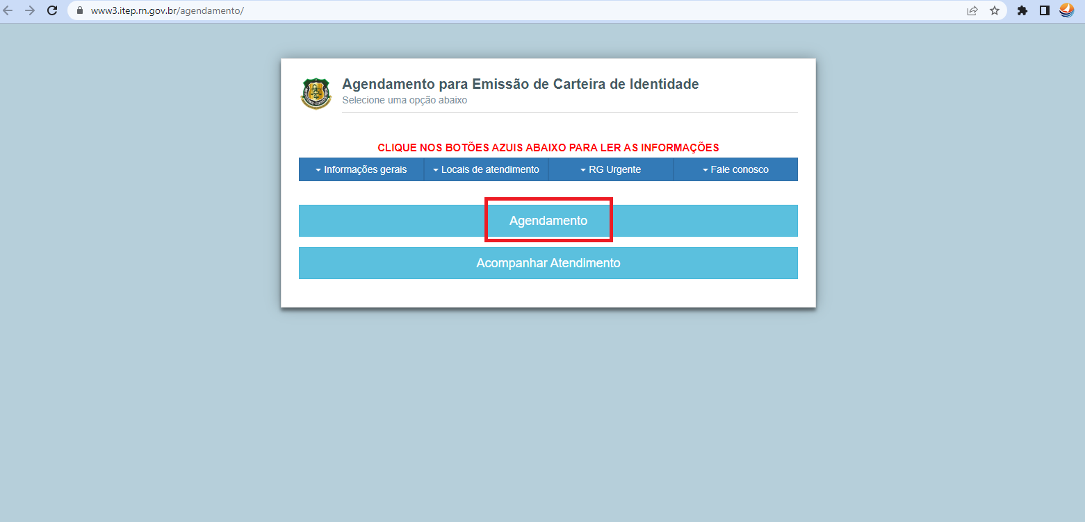 No Rio Grande do Norte, o agendamento para a emissão do RG é feito pelo Instituto Técnico-Científico de Perícia do Rio Grande do Norte (ITEP) e abre às 8h todos os dias, enquanto tiver vagas disponíveis. O endereço para agendamento é o www.itep.rn.gov.br/agendamento.