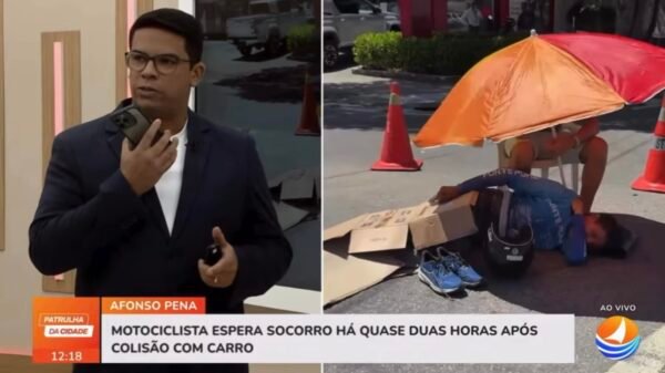 Após a colisão, o ciclista teria caído bem próximo a um ônibus que fazia o transporte de funcionários de uma empresa localizada na região