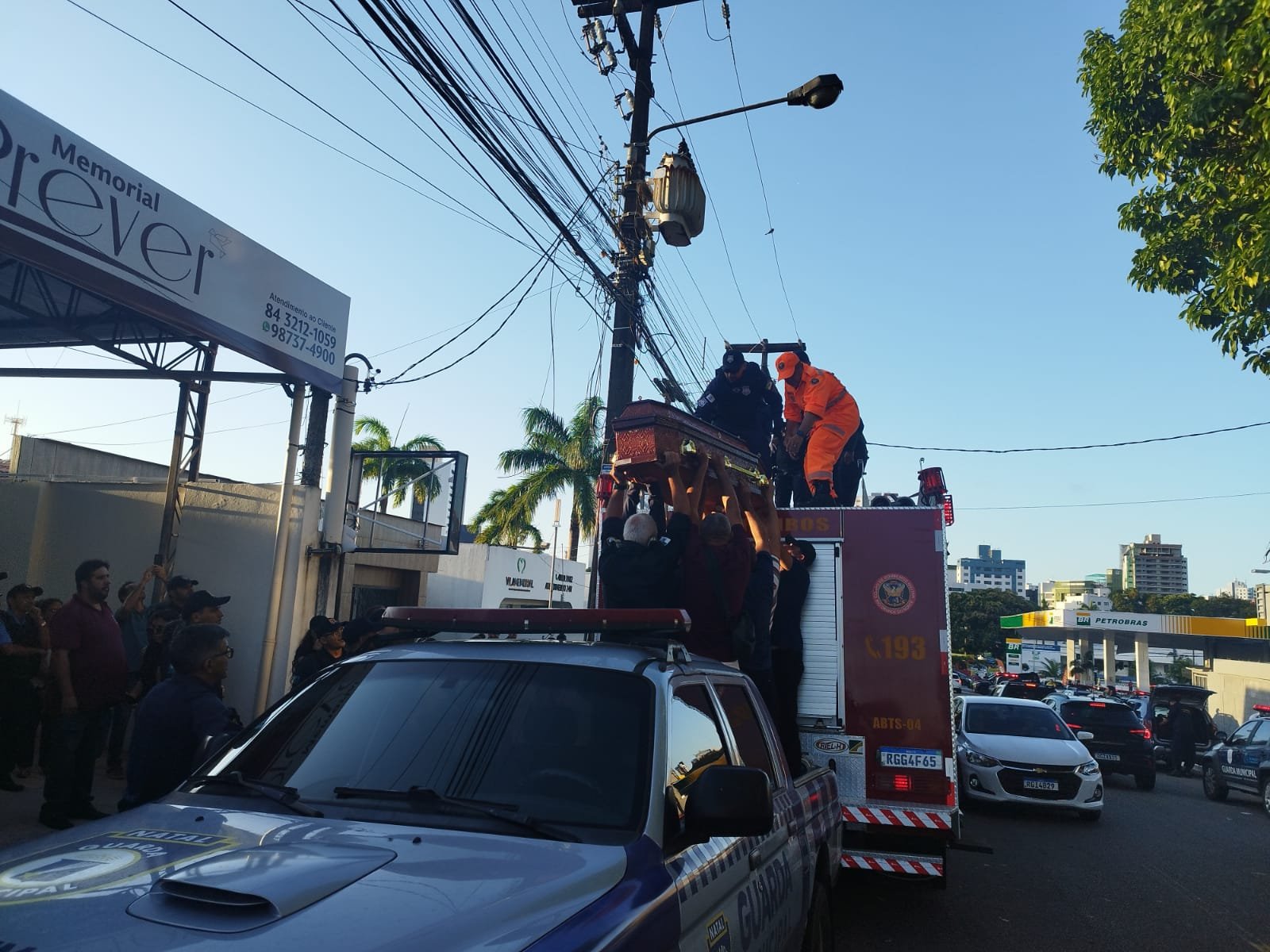 Na tarde desta segunda feira (31), familiares, amigos e agentes da segurança pública se reuniram para o último adeus. Conduzido pelos companheiros, o caixão com corpo de Clebiano seguiu em carro aberto dos bombeiros, que foi acompanhado por viaturas da guarda municipal, polícia civil militar e rodoviária federal.