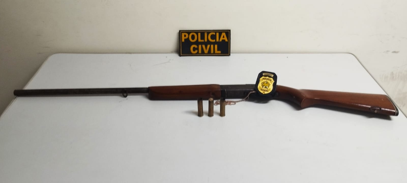 O homem foi preso por porte ilegal de arma e violência doméstica, sendo encaminhado ao sistema prisional, onde permanecerá à disposição da Justiça.