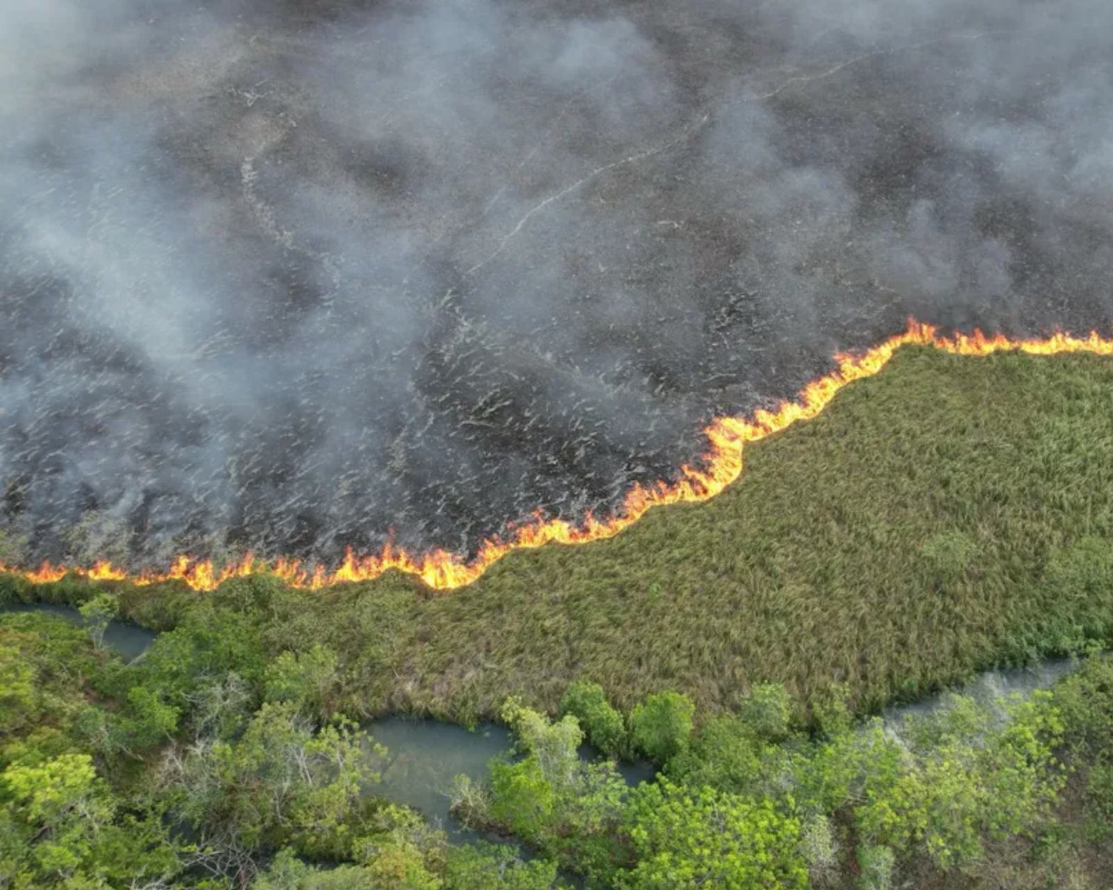 Um dos destinos turísticos mais procurados por brasileiros e estrangeiros no Brasil, a vegetação da cidade paradisíaca de Bonito (MS) foi tomada por um incêndio de grandes proporções, às margens do rio Formoso.