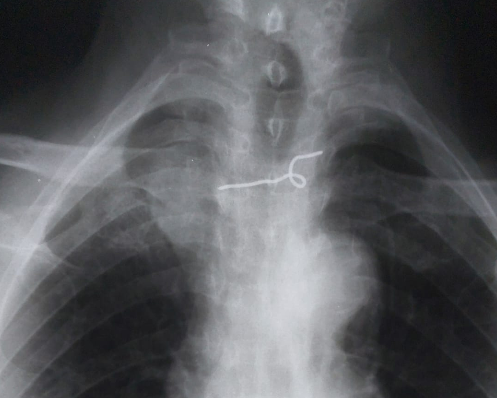 Segundo o enfermeiro que atendeu a senhora quando ela deu entrada no hospital de São Miguel, a paciente queixava-se de leve dor na garganta e esôfago. “Achamos que ela teria ingerido um pedaço de osso inicialmente, diante dessa informação, passei para o médico e ele solicitou um raio-x, e quando ela fez o exame, a imagem que tínhamos era realmente de um pedaço de metal, mais parecido com um arame, após isso, ela foi encaminhada para o hospital regional de Pau dos Ferros”, contou o profissional da saúde.