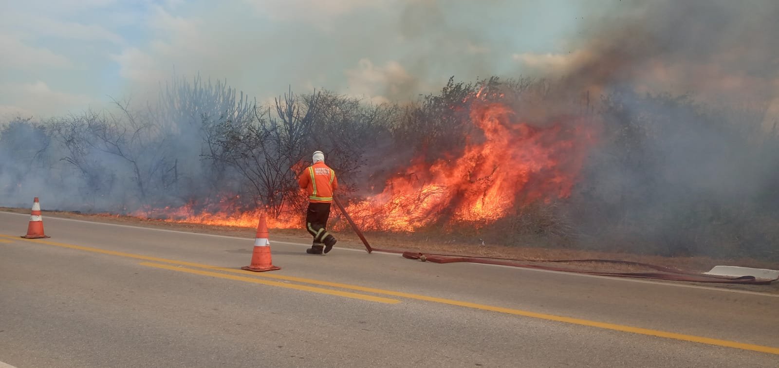 O Corpo de Bombeiros Militar do Rio Grande do Norte combateu dois incêndios na tarde desta segunda-feira (23). O primeiro foi as margens da BR 406, em João Câmara.