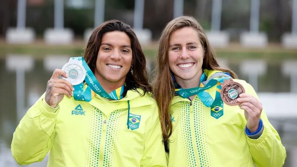 O Brasil conquistou as medalhas de prata e bronze com Ana Marcela Cunha e Viviane Jungblut na maratona aquática nos Jogos Pan-Americanos de 2023.