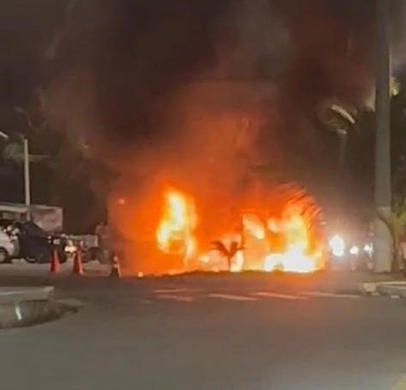 Uma unidade móvel da Polícia Militar do Rio Grande do Norte, pegou fogo na início da noite desta segunda-feira (06), em uma rotatória que fica localizada na praia de Areia Preta, zona Leste de Natal.