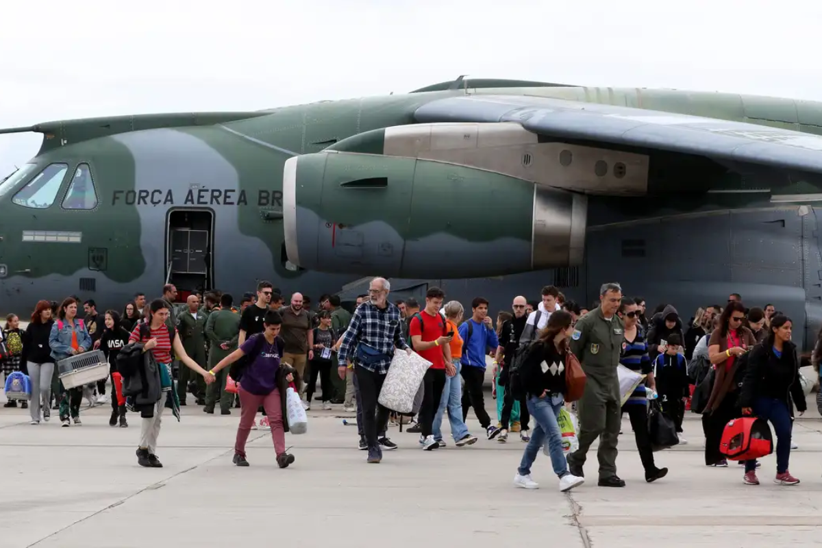 A aeronave KC-30 (Airbus A330 200) da Força Aérea Brasileira (FAB) decolou da Base Aérea do Galeão às 5h08 deste sábado (9), para resgatar mais brasileiros que estão na Faixa de Gaza. À bordo, o avião leva um carregamento de cerca de 11 toneladas de alimentos não perecíveis, fornecidos pelo Brasil para assistência humanitária.