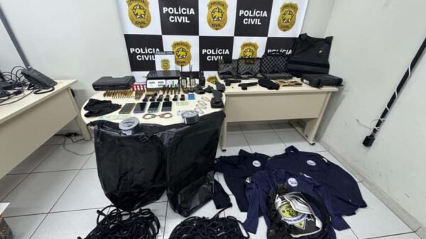 Foram apreendidas 03 carabinas calibre 12, 04 revólveres 38, 01 pistola 9 milímetros, 02 coletes balísticos e vasta munição e artefatos explosivos.
