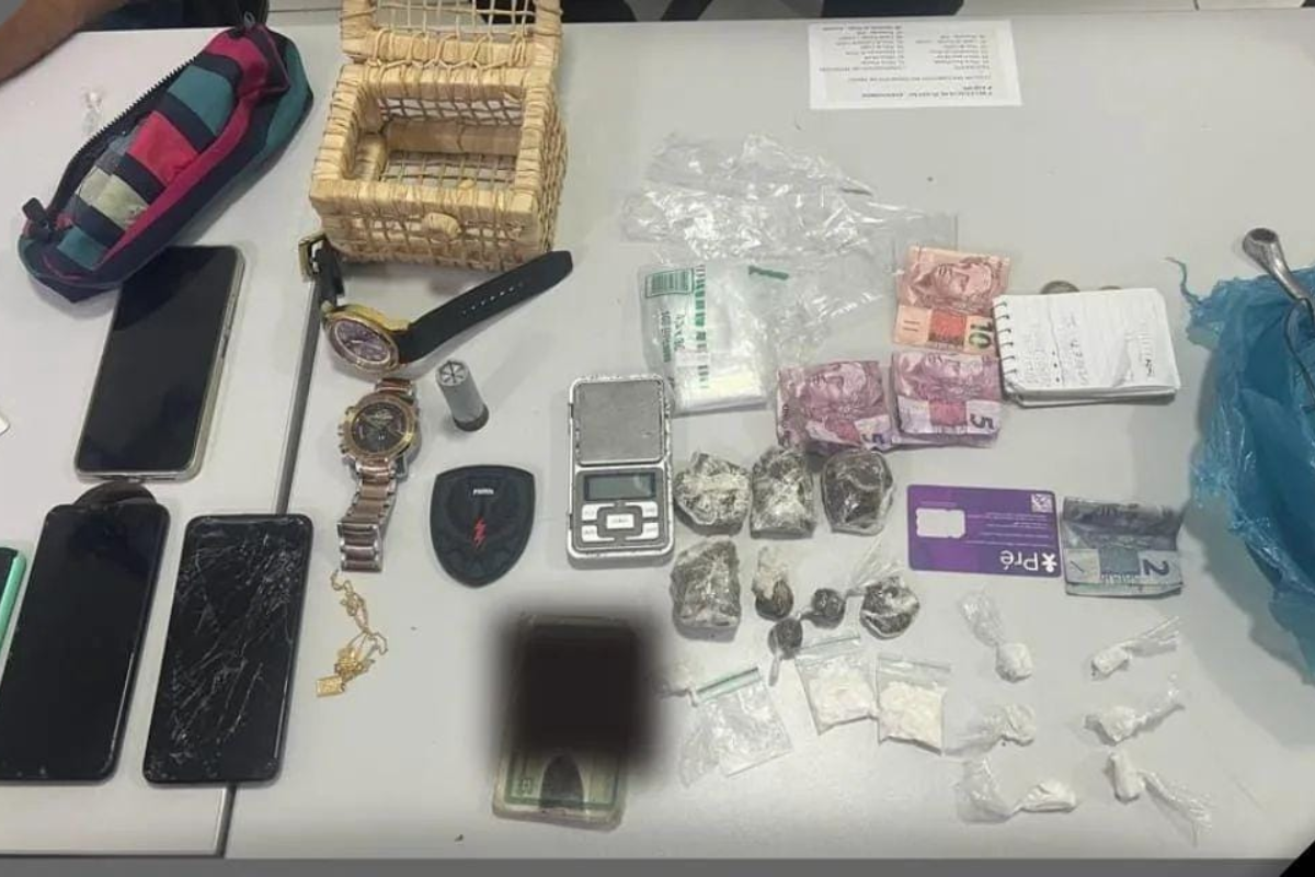 No interior da conveniência, os policiais militares descobriram mais entorpecentes, juntamente com celulares, relógios, dinheiro fracionado, uma corrente banhada a ouro, munição de calibre .12 e várias peças de motocicleta.
