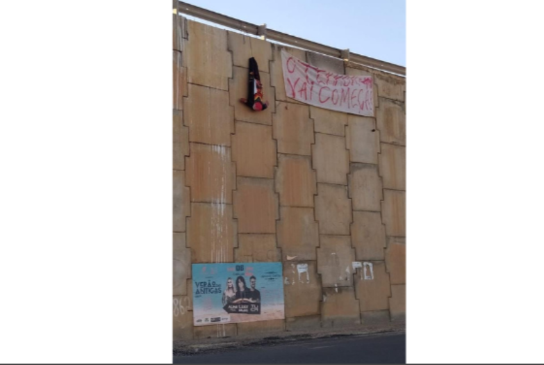 Na manhã desta quarta-feira (17) foi identificado no viaduto do Nova Betânia, em Mossoró, um boneco e uma faixa com a frase “O terror vai começar”. Segundo informações da Polícia Militar, uma torcida organizada teria colocado a mensagem.