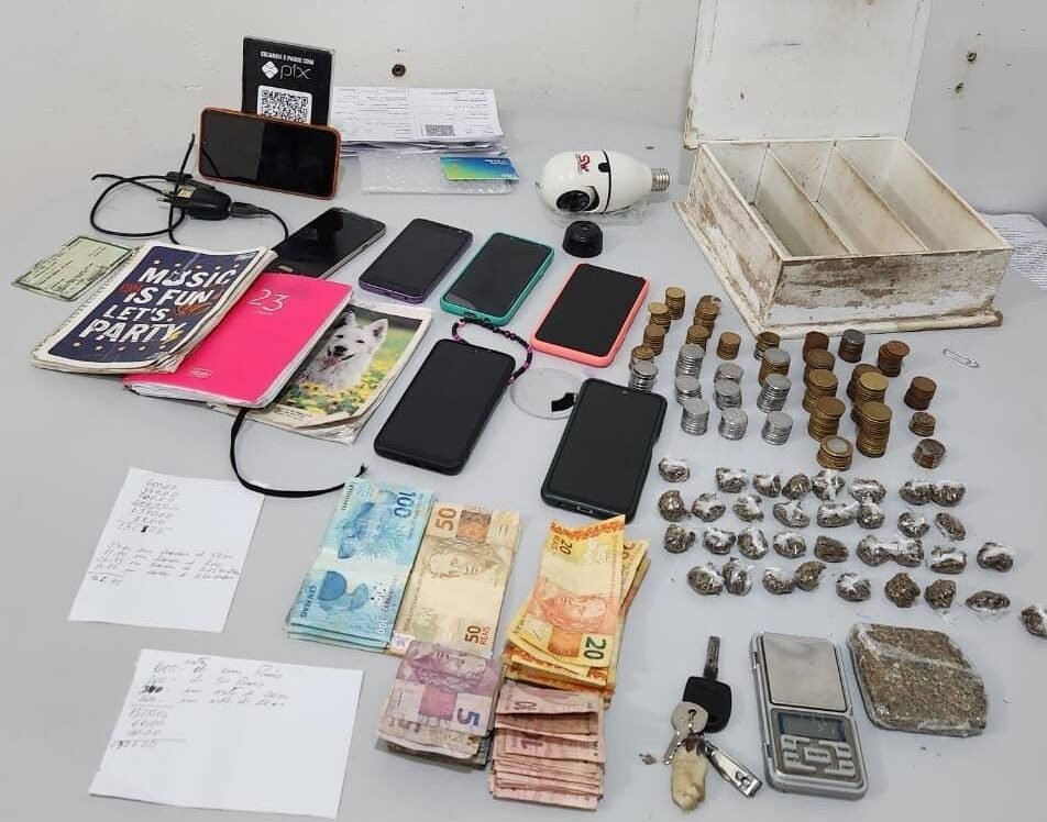 Na ocasião, foram apreendidos aparelhos celulares, drogas, cadernos de anotação, balança de precisão, apetrechos utilizados para a comercialização de drogas e outros objetos. De acordo com informações, um homem, investigado pelo crime de tráfico de entorpecentes e apontado como o responsável por um ponto de comercialização de drogas, onde funcionava um disque-droga, vendia a mercadoria através do PIX e QR-code personalizado, além de disponibilizar o serviço de entrega domiciliar.