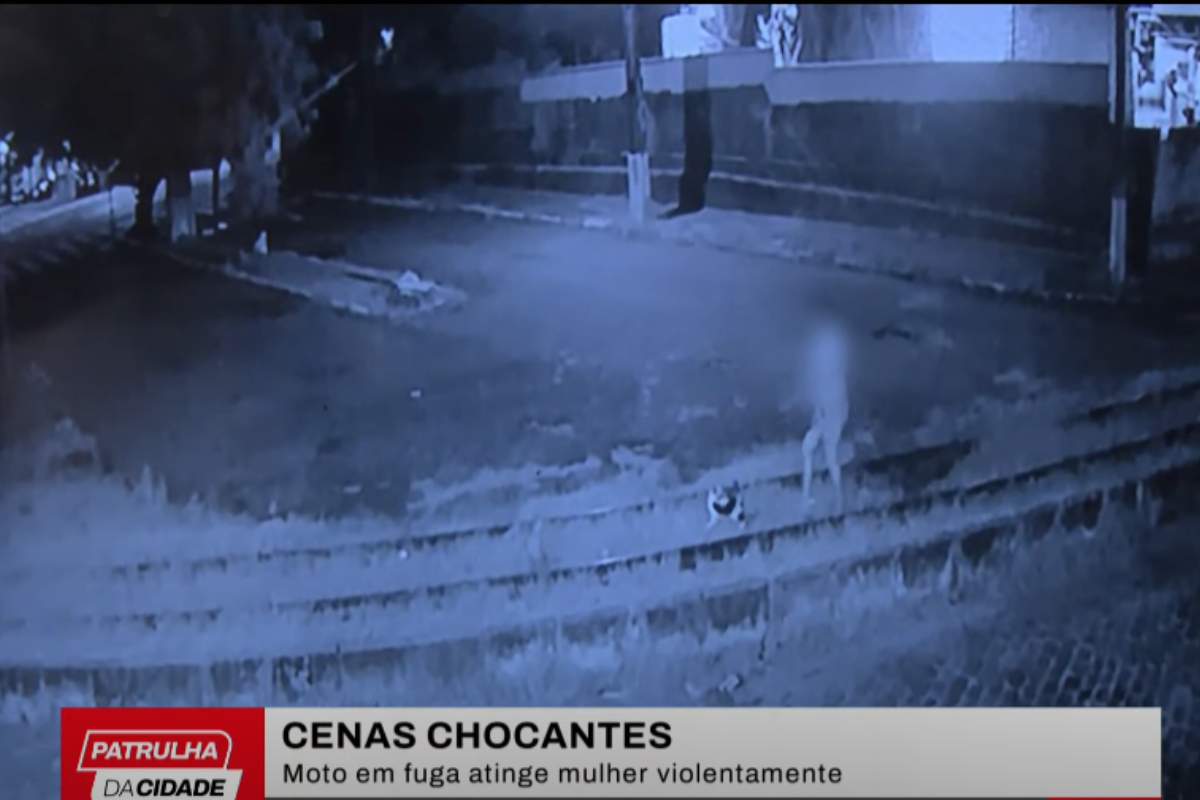 Imagens de segurança registraram o momento em que uma motoclicleta utilizada por homens em fuga, atinge Vânia do Nascimento Cavalcante, de 36 anos. O caso aconteceu na madrugada desta segunda-feira (25), na Rua dos Paiatis, antiga Avenida 2, no bairro do Alecrim.