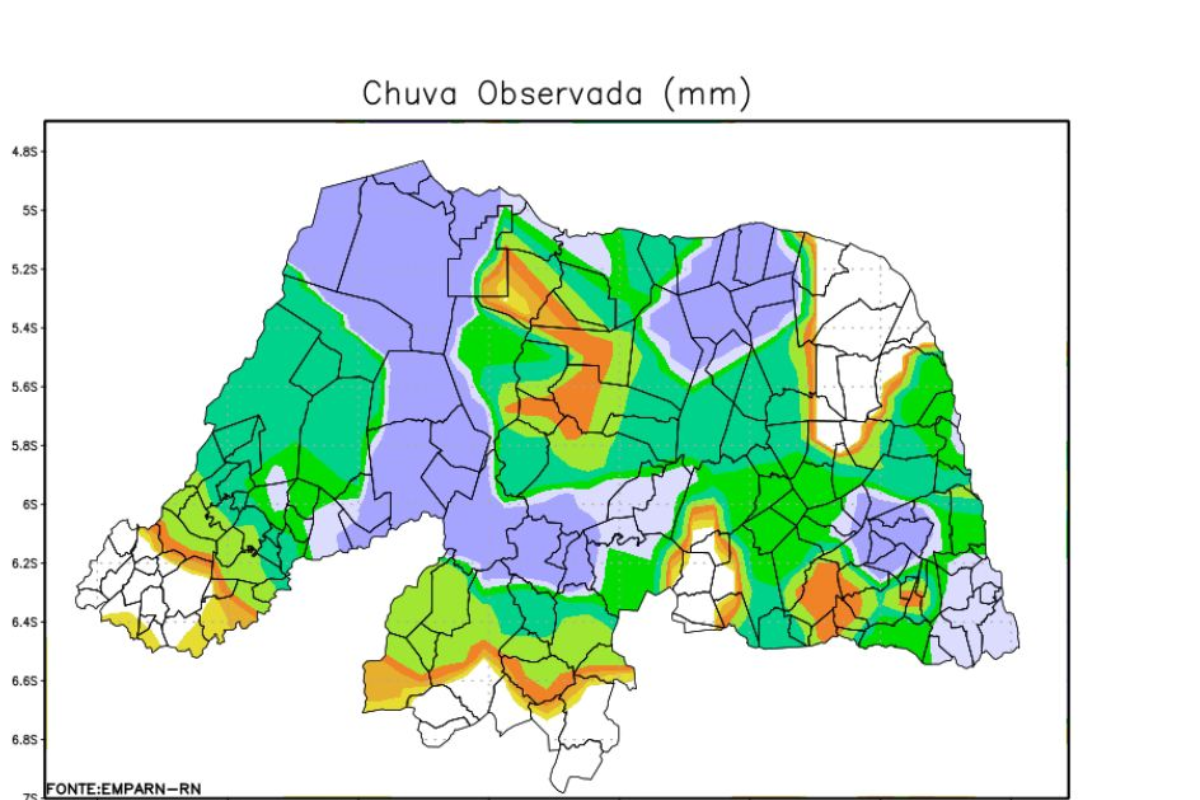 O Sistema de Monitoramento da Empresa de Pesquisa Agropecuária do Rio Grande do Norte (Emparn) registrou a ocorrência de chuvas em todas as regiões do estado, com destaque para a região Agreste Potiguar.