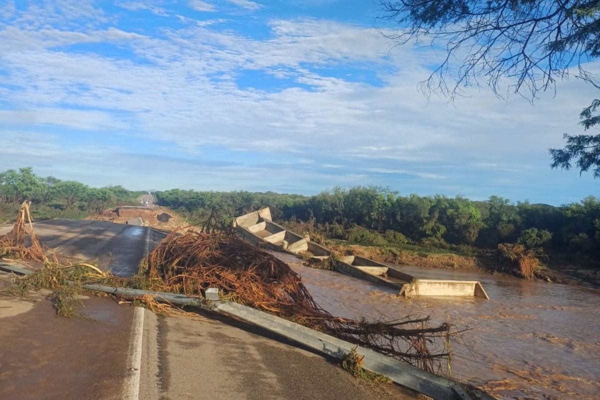 A BR 304, em Lajes, segue totalmente interditada nos trechos km 204 a 206 na manhã desta segunda-feira (1º). Não há previsão de liberação. O trecho foi interditado em razão do transbordamento dos rios e queda da ponte.