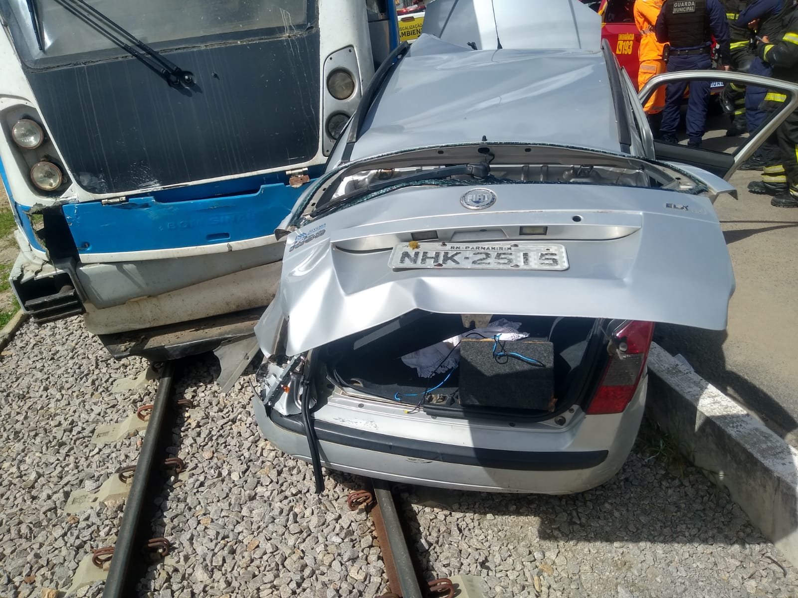 Uma mulher, de 25 anos, ficou presa em um carro após colisão com um VLT na Avenida Dr. Luiz Antonio, no Jardim Planalto, em Parnamirim, Região Metropolitana de Natal, na manhã desta quinta-feira (11). A equipe de salvamento do Corpo de Bombeiros esteve no local e retirou a vítima do veículo. Os bombeiros foram acionados para atender a ocorrência às 08h40. O ocorrência aconteceu próximo a Base Aérea da cidade.