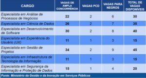 – Deve ter também cinco anos de experiência nas áreas de Tecnologia da Informação e Comunicação, Ciência de Dados, Administração Pública, Comunicação, Administração, Ciência da Informação ou Engenharias.