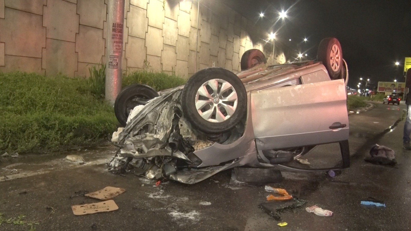 Casal finge ser cliente, rouba carro de motorista por aplicativo e capota na fuga