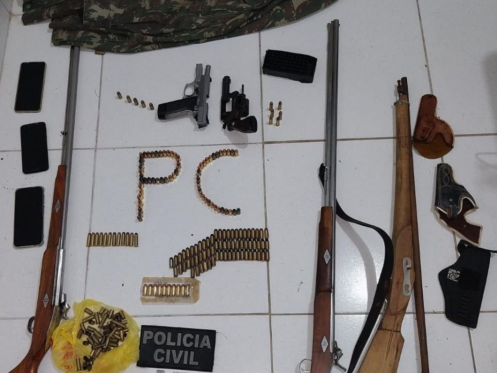Na Operação, foram presos dois homens, o primeiro de 33 anos, e o segundo de 40 anos. Também foram apreendidas três espingardas , três aparelhos telefones, 149 munições de cal .40 S&W, 22 munições cal .38 SPL, uma pistola .40 S&W da marca Taurus, um revólver cal .38 SPL da marca Taurus, 19 cartuchos deflagrados de cal .38 SPL, 27 cartuchos deflagrados de calibre .40 S&W, um cartucho deflagrado de cal 32, uma munição deflagrada de .380 ACP, uma porção de pólvora, uma porção de chumbo e quatro blusões camuflados.