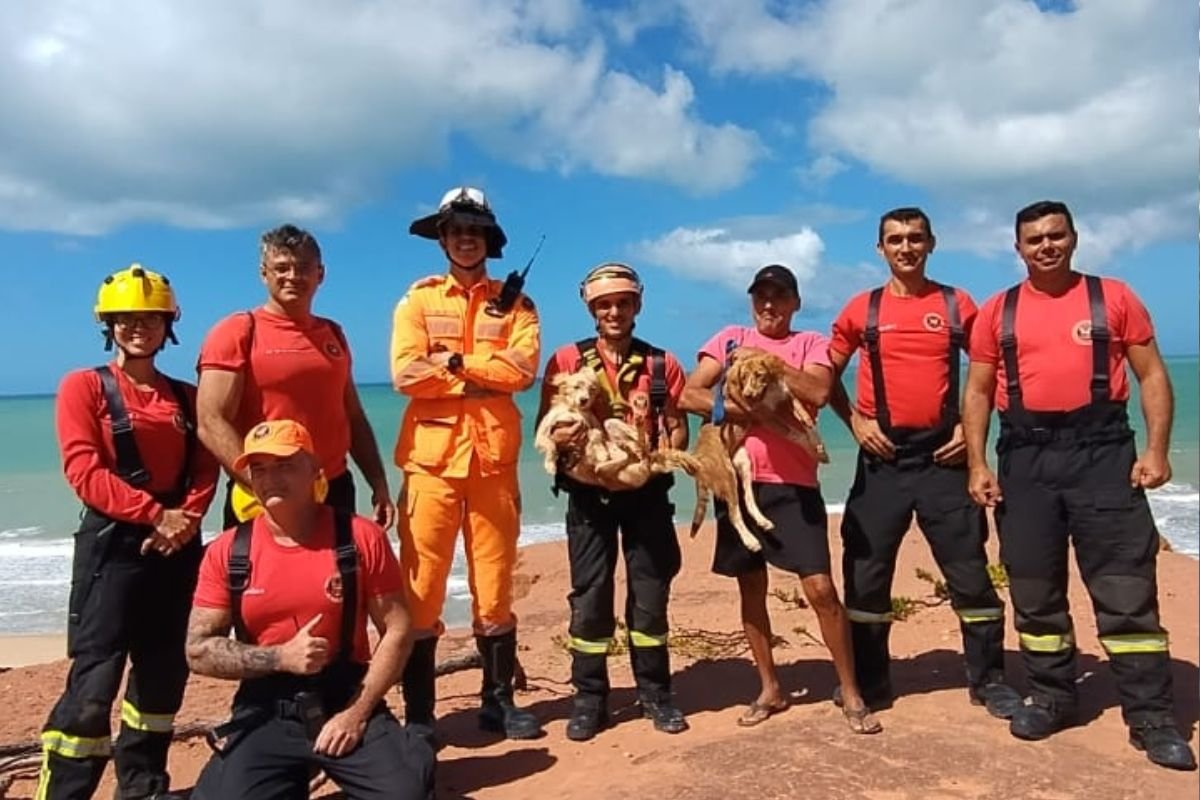 Os cães, identificados como Pipi e Pipoca pertencem a uma família local que frequentemente visita a praia para caminhadas matinais. Segundo relatos, os animais se distanciaram dos tutores e acabaram caindo em uma área íngreme das falésias. Incapazes de retornar sozinhos, os cães começaram a latir, chamando a atenção de outros frequentadores da praia, que prontamente acionaram o Corpo de Bombeiros.