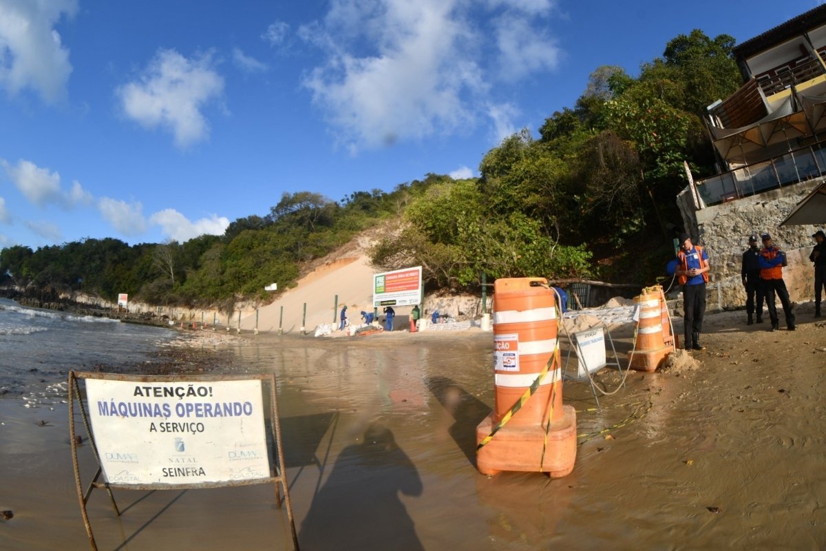 A coordenadora da Defesa Civil, Fernanda Jucá, informou que, apesar das interdições, os estabelecimentos antes do morro e o banho de mar permanecem liberados. Além disso, a Defesa Civil identificou problemas na Praia da Redinha, onde quiosques foram danificados, e planeja isolar a região com barricadas de areia.