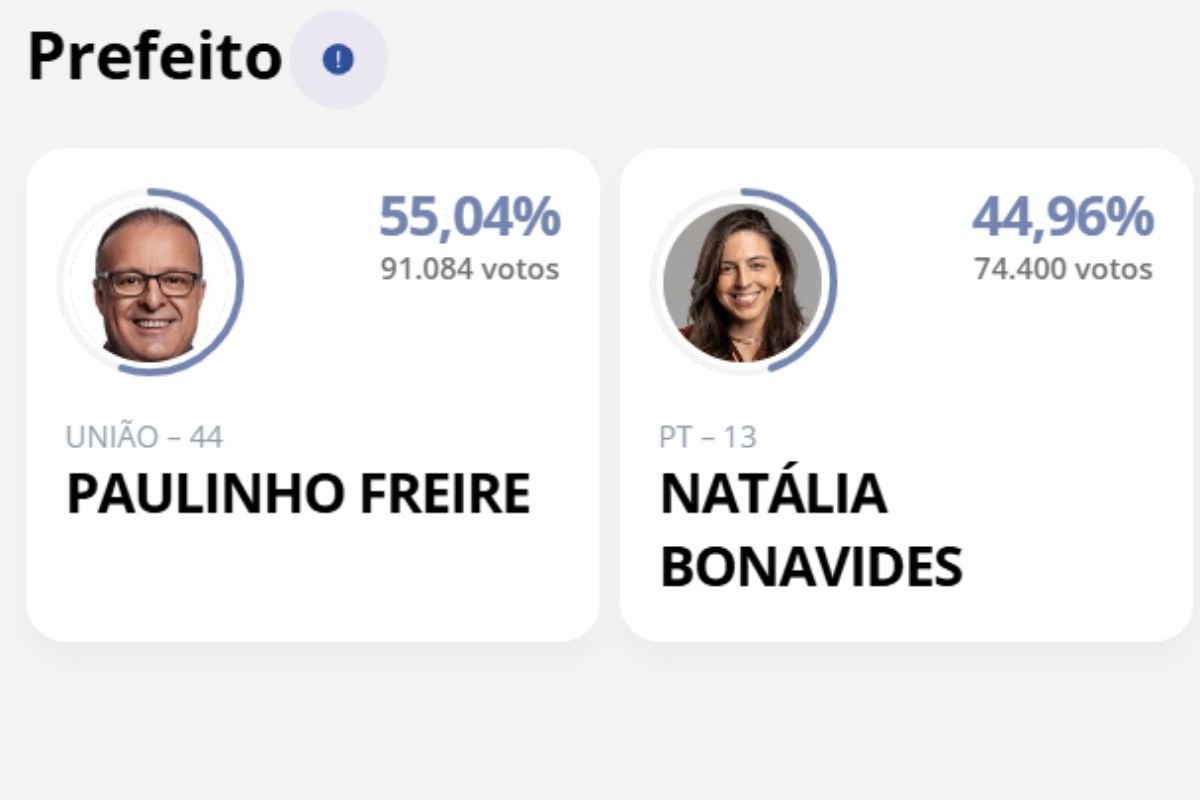 Com 40,37% das seções totalizadas Paulinho Freire (União Brasil) se mantém na liderança da apuração dos votos do segundo turno das eleições municipais em Natal.