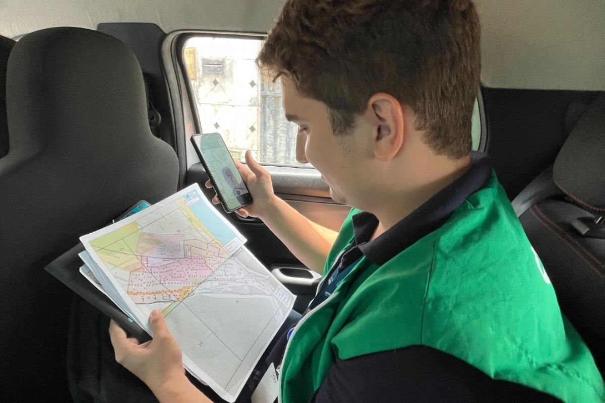 Durante o reconhecimento das rotas, foram utilizados mapas digitais e impressos, além do apoio de Agente de Combate às Endemias (ACE) e de Agente Comunitário de Saúde (ACS) dos territórios, para auxiliar na orientação espacial. A equipe percorreu as ruas da cidade para reconhecer o ambiente e mapear o percurso que deverá ser realizado quando for iniciada a fase de liberação dos mosquitos. Identificando qual área terá acesso por carros, qual área o trajeto deverá ser feito de outra forma, e realizando as adequações necessárias para quando for iniciada a fase de implementação.